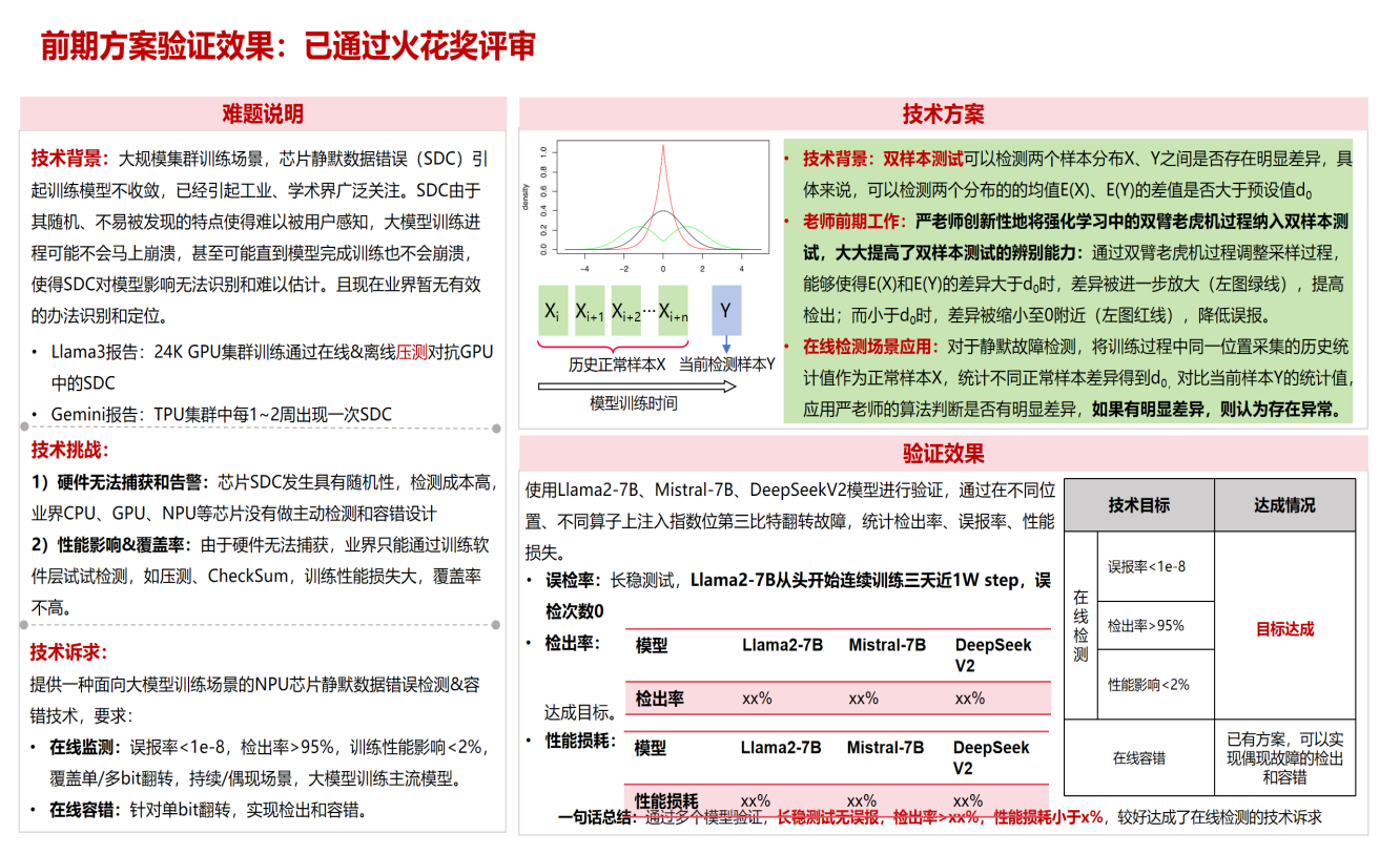 该难题围绕大模型训练过程中芯片静默数据错误展开,是国际人工智能科技巨头DeepSeek、OpenAI、DeepMind大模型训练中遇到的公开难题。此类错误具有隐蔽性强、难以及时发现等特点,容易导致模型训练偏差甚至失败,而传统检测方法普遍存在计算成本高、误报率高和检出率不足等问题。