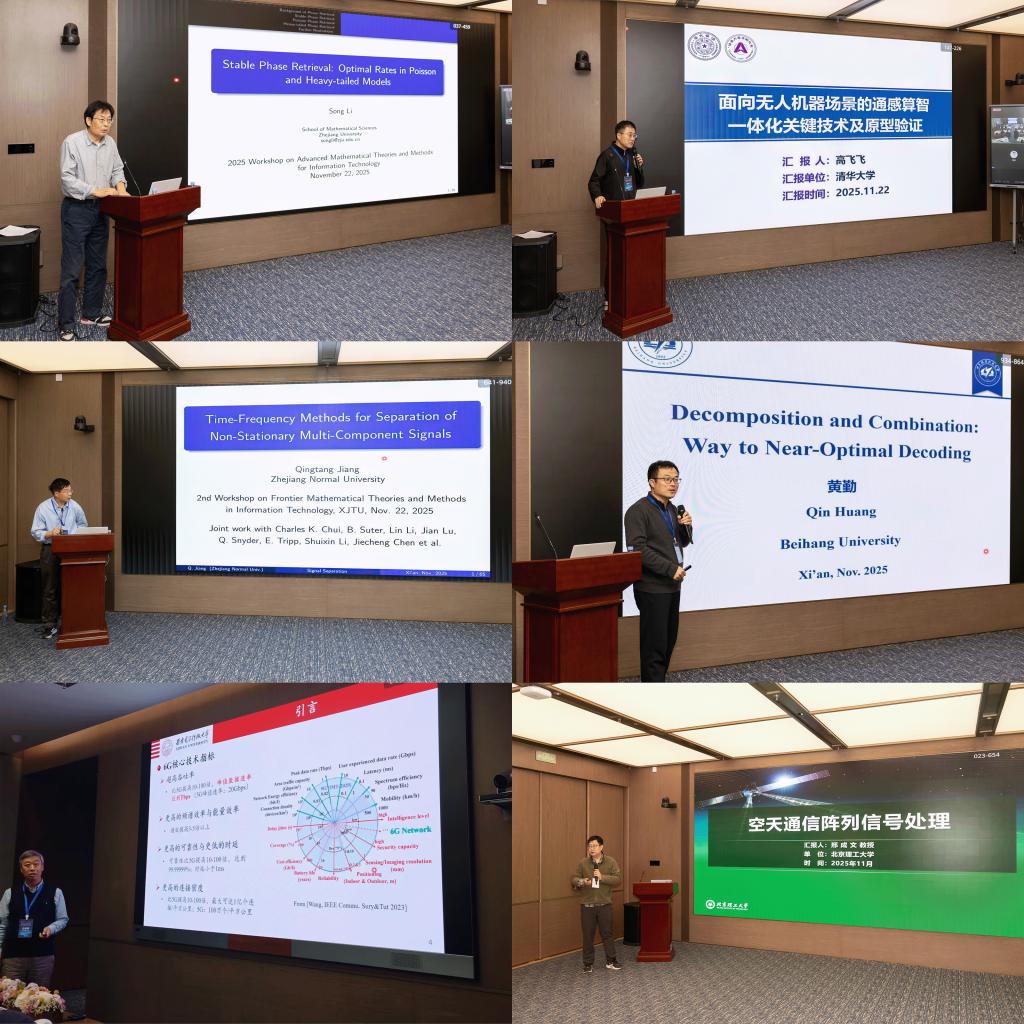承办、华为技术有限公司协办的“2025年信息技术的前沿数学理论与方法”前沿学术研讨会在西安交通大学中国西部创新港成功举办。研讨会聚焦通信理论、信息论、压缩感知和机器学习等信息科学与技术前沿问题,吸引了来自浙江大学、清华大学、西安交通大学、北京航空航天大学、南开大学、哈尔滨工业大学、香港中文大学(深圳)等高校的三十余位知名专家学者参会,共同探讨信息技术发展的最新数学理论、研究方向与未来趋势,推动相关领域的交叉融合与创新发展。